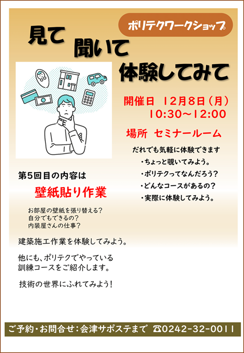 さて、12月8日(月)に行われるポリテク ワークショップのお知らせです!