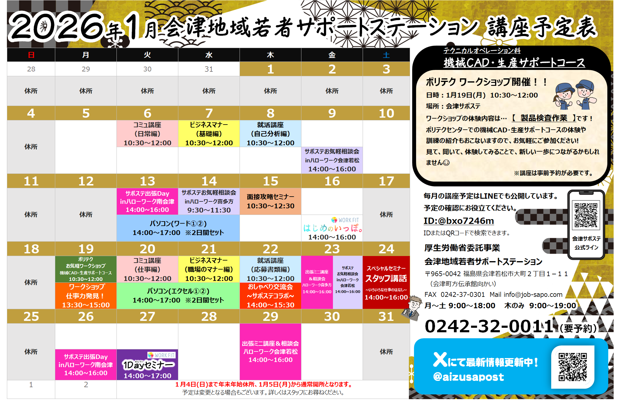 各講座ご予約・相談のお問い合わせは、会津サポステまでお願いいたします😌