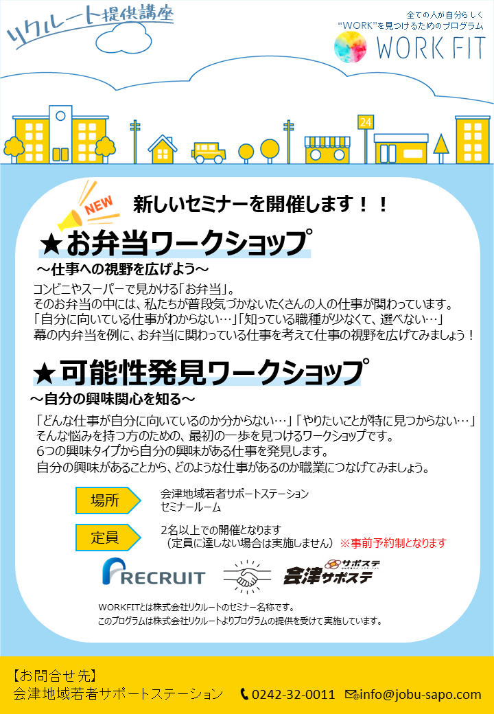 ご予約は、会津地域若者サポートステーション(0242-32-0011)までお願いいたします。